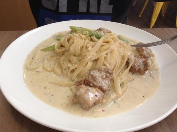 白酒奶油雞肉義大利麵(寬麵) NT.95元